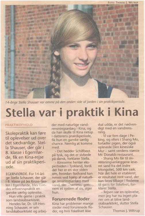 A school internship can lead to special experiences. Stella Schauser, from class 8 of a Danish school in Eckernförde, made a trip to China during her school internship period.