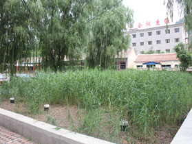 2012年5月,利用园区外围绿地,建造占地200㎡,日处理量15m³的污水处理系统,主要处理餐厅产生的污水,处理后出水能达到《城镇污水处理厂污染物排放标准》中的一级A类标准限值,处理后的水主要用于灌溉绿化等。