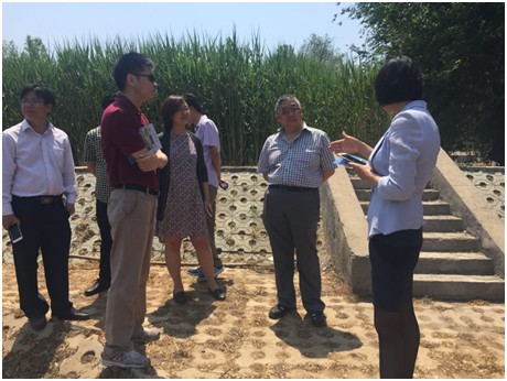 段伟总工程师详细了解了功能型精准湿地技术的来源、工艺流程、技术特点及运行效果。随后段伟总工程师一行对西柏店村功能型精准湿地生活污水处理设施进行了实地考察,对设施的建设投资、处理负荷、占地面积、运行费用、出水效果等进行了详细了解。