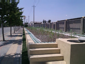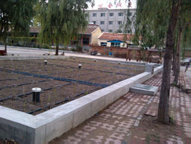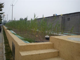 2012年5月,利用园区外围绿地,建造占地200㎡,日处理量15m³的植被污水净化系统,主要处理餐厅产生的污水,处理后出水达到《城镇污水处理厂污染物排放标准》中的一级A类标准限值,处理后的水主要用于灌溉绿化等。